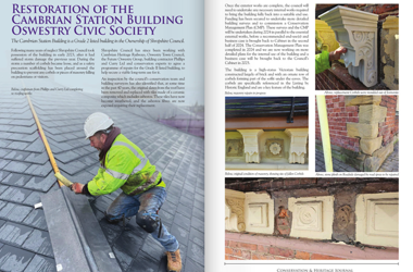 Key restoration works have included the replacement of damaged corbels and stringers, the safe removal of asbestos slates and replacement with new Ffestiniog Welsh Slate. The repair of sandstone plinths with locally sourced Grinshill stone, and the buildings windows and other architectural details have also been carefully redecorated.